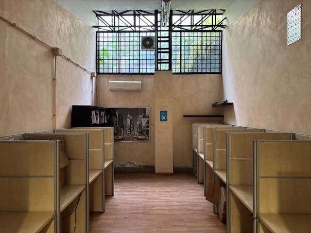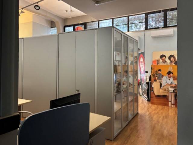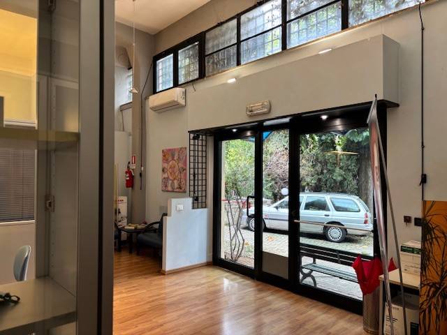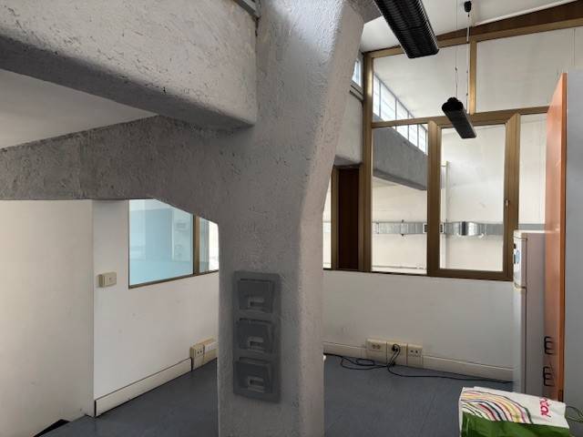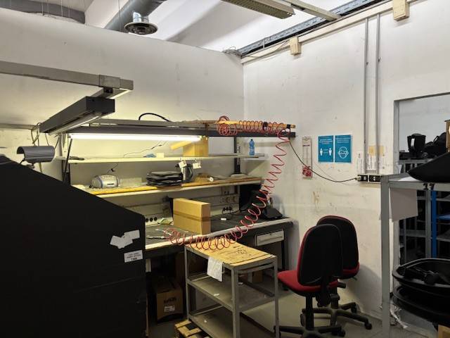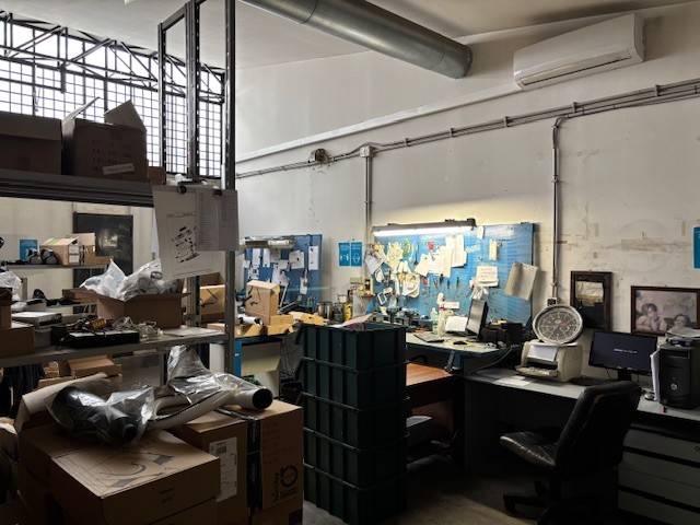 Opificio cieloterra di circa 1200 mq con due accessi carrabili e due pedonali, ampio spazio esterno/parcheggio, aree uffici, altezza massima 6,50 mt, luminoso, finestratato, possibilità di subaffitto. Eu. 10.500.