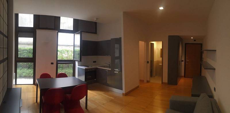 In palazzina di nuova costruzione con servizio di portineria, proponiamo delizioso monolocale posto al pian terreno completamente ristrutturato ed arredato con mobili di design composto da una zona living con divano letto ed angolo cottura, bagno, completa la proprietà un posto auto coperto. Eu. 1.200